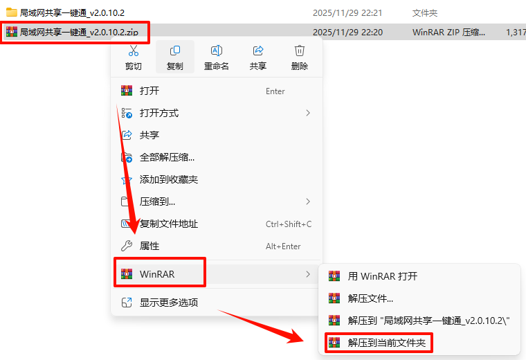 1.选中下载的压缩包,然后鼠标右键选择“解压到当前文件夹”