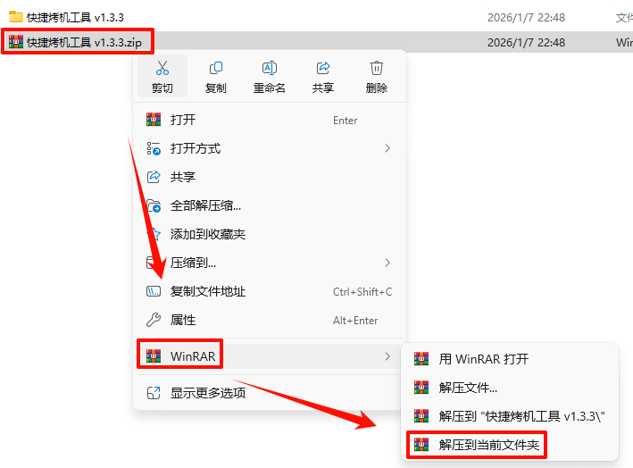 1.选中下载的压缩包,然后鼠标右键选择“解压到当前文件夹”