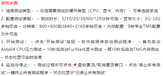 快捷烤机工具是一款基于Rust语言开发的Windows平台硬件压力测试管理工具,能够一键启动多个专业的硬件测试软件,实现CPU、显卡、内存的同时压力测试。软件采用现代化的GUI界面,操作简单直观,是硬件爱好者、超频玩家和系统稳定性测试的得力助手。