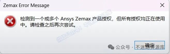Q:提示:“检测到一个或多个 Ansys Zemax 产品授权,但所有授权均正在使用中。请检查之后再次尝试。或者软件功能受限