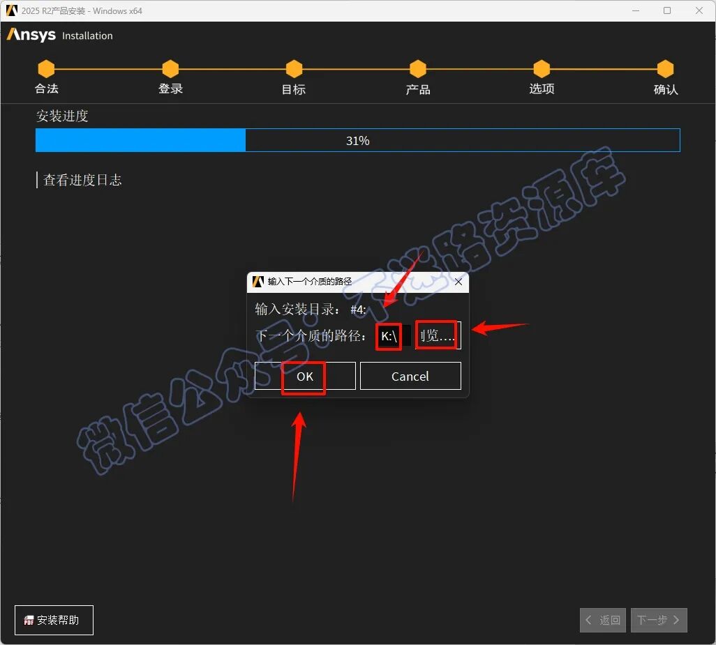 43.中途安装进度达到31%的时候会提示选择下一个介质的路径,返回之前解压的“Ansys.2025.R2.Products”文件夹,选中“ANSYS2025R2_WINX64_DISK4”iso文件,鼠标右键选择“装载”