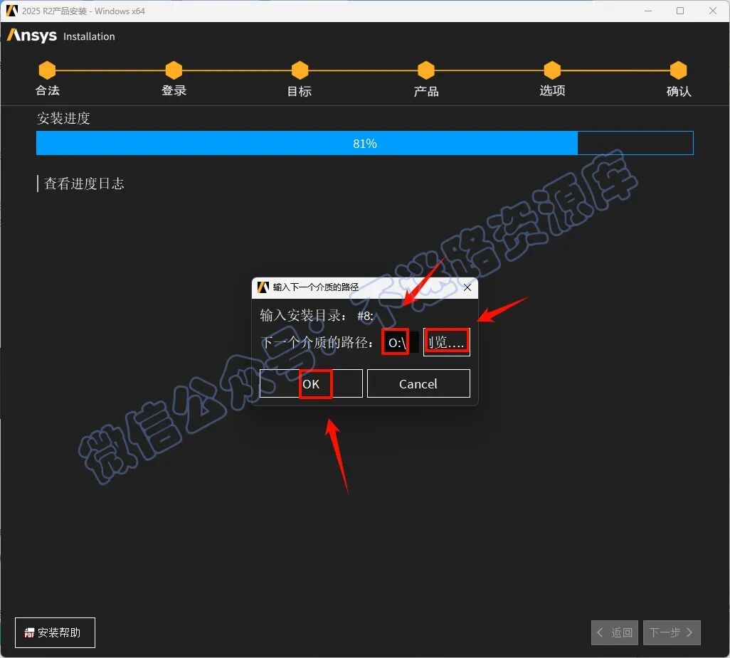 55.中途安装进度达到81%的时候会提示选择下一个介质的路径,返回之前解压的“Ansys.2025.R2.Products”文件夹,选中“ANSYS2025R2_WINX64_DISK8”iso文件,鼠标右键选择“装载”
