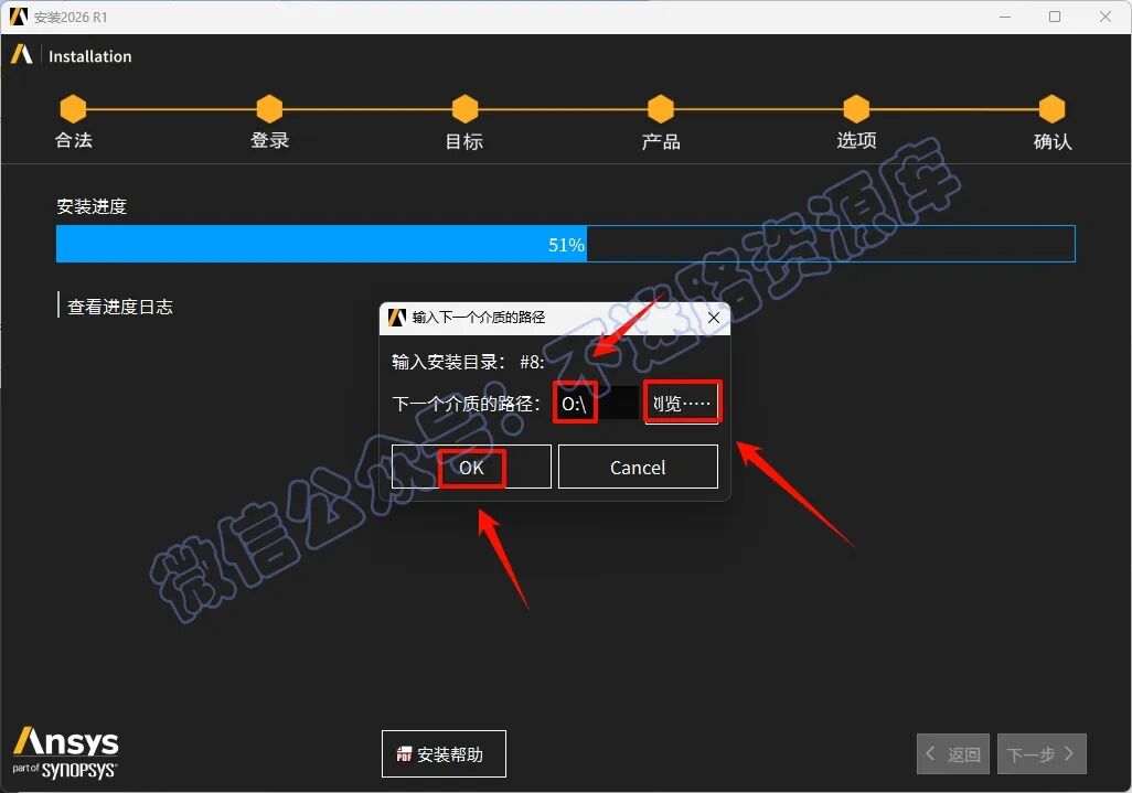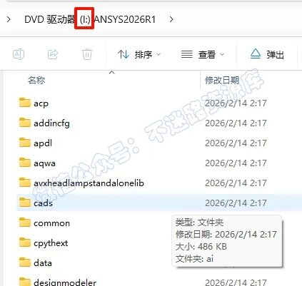 50.中途安装进度达到40%的时候会提示选择下一个介质的路径,返回之前解压的“Ansys.2026.R1.Products”文件夹,选中“ANSYS2026R1_WINX64_DISK6”iso文件,鼠标右键选择“装载”