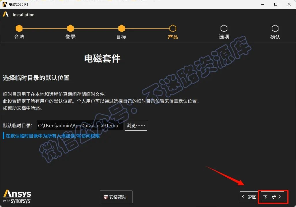 29.临时目录根据需要选择存放位置,点击“下一步”