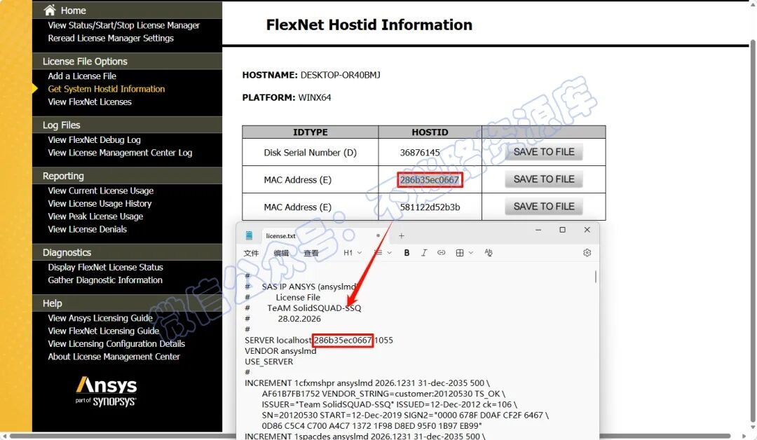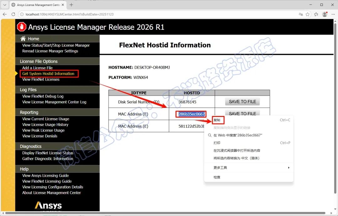 16.打开之后,点击“Get System Hostid Information”,复制第二项的HOSTID(MAC Address)