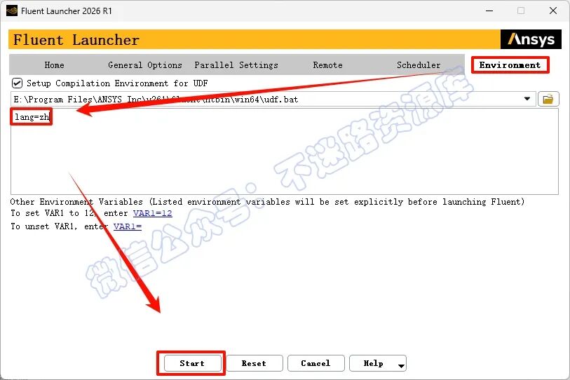 点击“Environment”,输入“lang=zh”,点击“start”即可