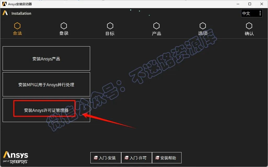 4.点击“安装ANSYS许可证管理器“