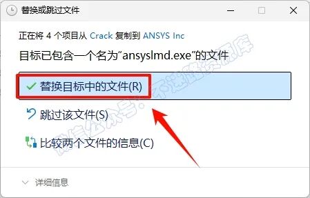 76.点击“替换目标中的文件“(若提示需要管理员权限,勾选“为所有...”,点击“继续”)