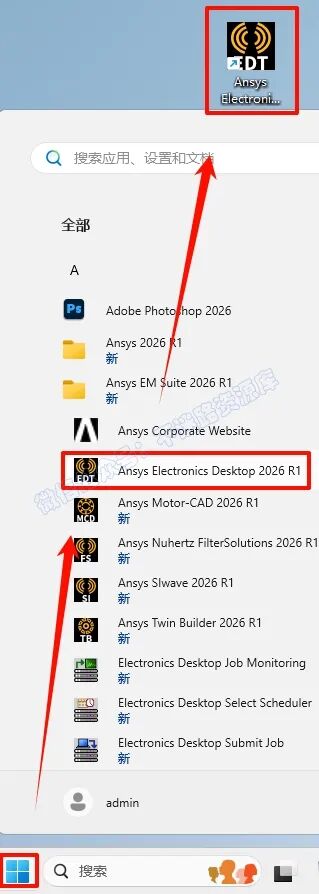 86.Electronics创建桌面快捷方式,点击“开始“菜单栏,点击“所有应用“,找到ANSYS Electronics软件,鼠标左键拖拽到桌面上即可创建桌面快捷方式