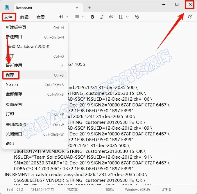 17.返回之前解压的“Ansys.2026.R1.Products”文件夹,双击打开“Crack”文件夹,打开“license.txt”文本文件,在文本中找到“XXXXXXXXXXXX”