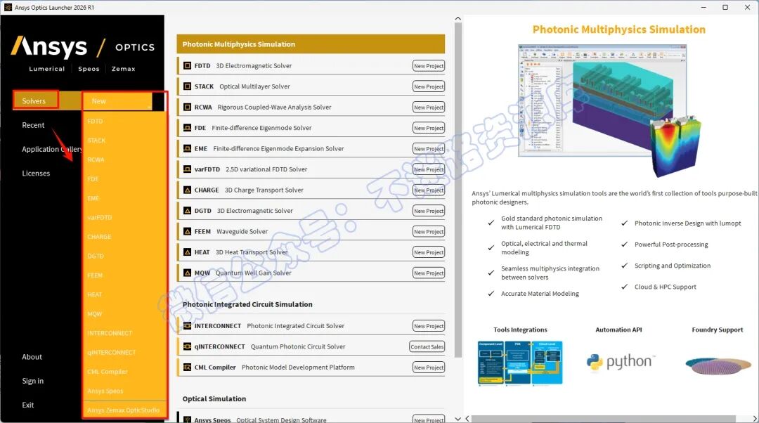 84.点击“Solvers“,点击“New“选择需要软件,Zemax和Lumerical都有