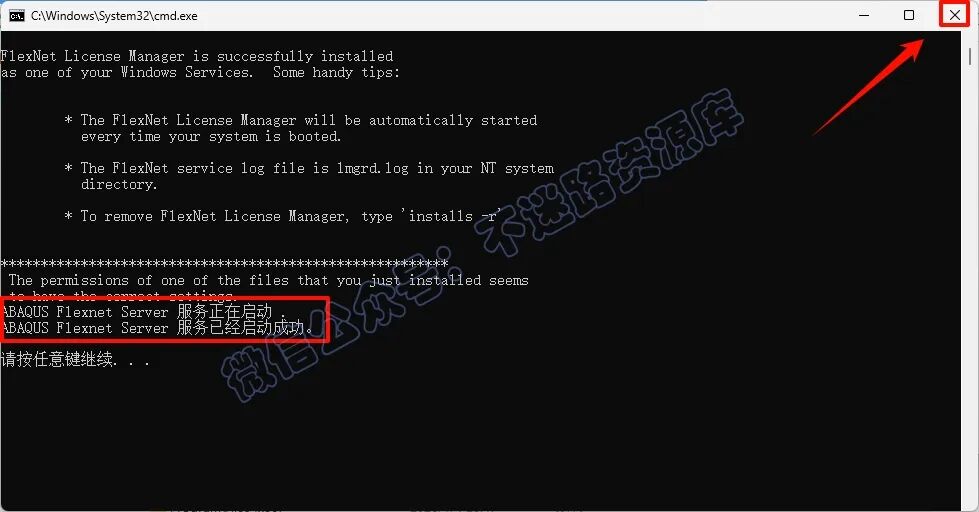 5.Ìáʾ”·þÎñÒѾÆô¶¯³É¹¦”ºó£¬µã»÷ÓÒÉϽǔX”¹Ø±Õ½çÃæ