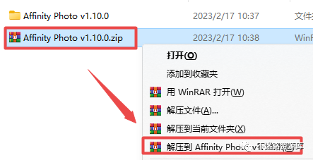 1.Ñ¡ÖÐÏÂÔØµÄѹËõ°ü£¬È»ºóÊó±êÓÒ¼üÑ¡Ôñ½âѹµ½“Affinity Photo v1.10.0”