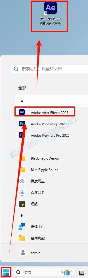 6.µã»÷“¿ªÊ¼“²Ëµ¥À¸£¬µã»÷“ËùÓÐÓ¦ÓÓ£¬ÕÒµ½“Adobe After Effects“Èí¼þ£¬Êó±ê×ó¼üÍÏ×§µ½×ÀÃæÉϼ´¿É´´½¨×ÀÃæ¿ì½Ý·½Ê½