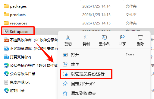 2.´ò¿ª¸Õ¸Õ½âѹµÄÎļþ¼Ð£¬Êó±êÓÒ¼üµã»÷“Set-up.exe”Ñ¡Ôñ“ÒÔ¹ÜÀíÔ±Éí·ÝÔËÐД