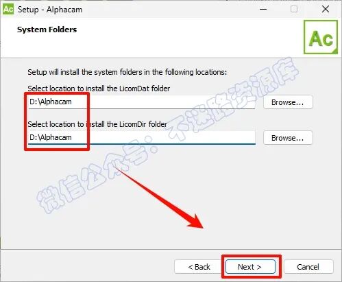 7.Á½´¦Â·¾¶°²×°µ½DÅÌ£¨½«Â·¾¶µØÖ·ÖеÄÊ××Ö·ûC¸ÄΪD±íʾ°²×°µ½DÅÌ£©,µã»÷“Next”