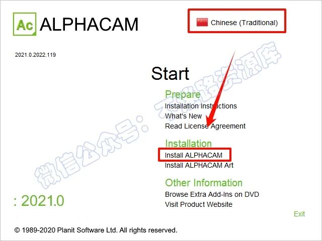 3.Ñ¡Ôñ“Chinese (Traditional)”£¬µã»÷“Install ALPHACAM”