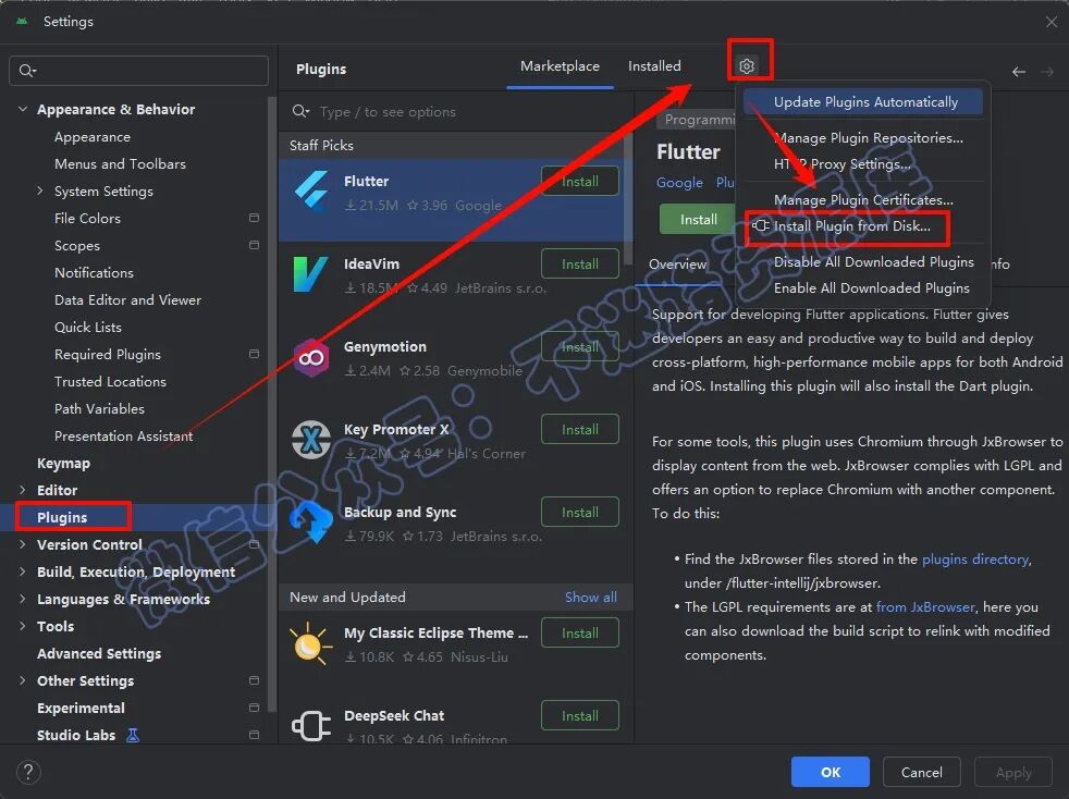 23.µã»÷“Plugins“£¬µã»÷ÉèÖÃͼ±ê£¬µã»÷“Install...“