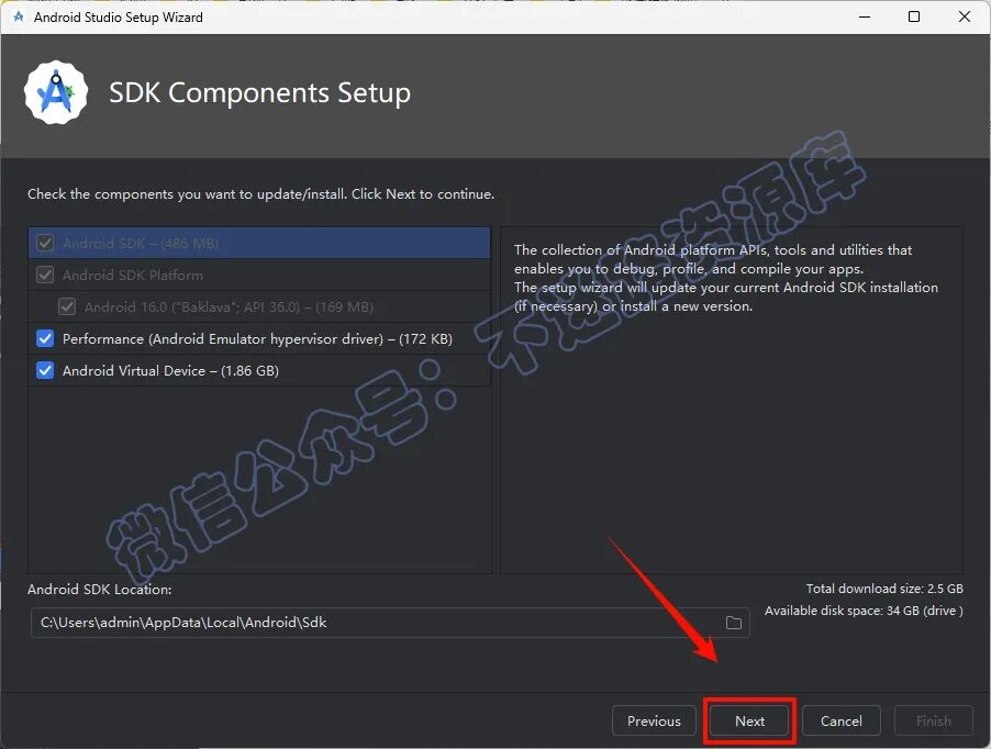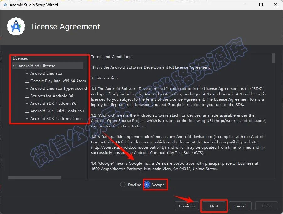 16.¸ù¾Ý×Ô¼ºµÄÐèÇóÑ¡ÔñSDK License£¬¹´Ñ¡“Accept”£¬µã»÷“Next“