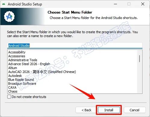µã»÷ “ ¿ªÊ¼ “ ²Ëµ¥À¸£¬ ÕÒµ½“Android Studio“Èí¼þ£¬Êó±ê×ó¼üÍÏ×§µ½×ÀÃæÉϼ´¿É´´½¨×ÀÃæ¿ì½Ý·½Ê½