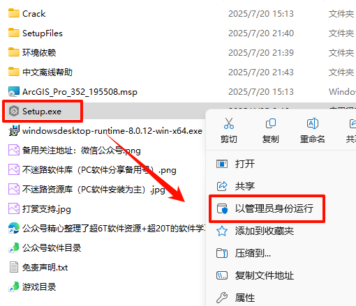 5.·µ»Ø°²×°°üÎļþ¼Ð£¬Êó±êÓÒ¼üµã»÷“Setup.exe”Ñ¡Ôñ“ÒÔ¹ÜÀíÔ±Éí·ÝÔËÐД
