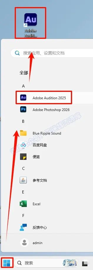 6.µã»÷“¿ªÊ¼“²Ëµ¥À¸£¬µã»÷“ËùÓÐÓ¦ÓÓ£¬ÕÒµ½“Adobe Audition“Èí¼þ£¬Êó±ê×ó¼üÍÏ×§µ½×ÀÃæÉϼ´¿É´´½¨×ÀÃæ¿ì½Ý·½Ê½