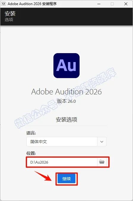 3.可以选择软件安装路径,建议和教程中的保持一致,本例安装在D盘(可以在其它磁盘里创建一个新的文件夹,安装路径不要出现中文),点击“继续”