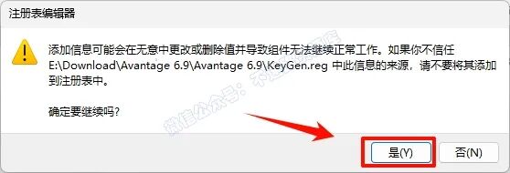 13.·µ»ØÖ®Ç°½âѹµÄ“Avantage 6.9”Îļþ¼Ð£¬Ë«»÷ÔËÐГKeyGen.reg“×¢²á±í²¹¶¡Îļþ