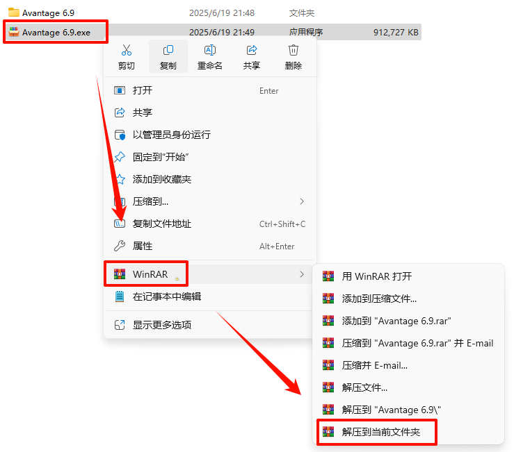 2.´ò¿ª¸Õ¸Õ½âѹµÄÎļþ¼Ð£¬Êó±êÓÒ¼üµã»÷“Avantage v 6.9.0.59.exe”Ñ¡Ôñ“ÒÔ¹ÜÀíÔ±Éí·ÝÔËÐД