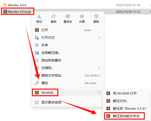 1.Ñ¡ÖÐÏÂÔØµÄѹËõ°ü£¬È»ºóÊó±êÓÒ¼üÑ¡Ôñ“½âѹµ½µ±Ç°Îļþ¼Ð”