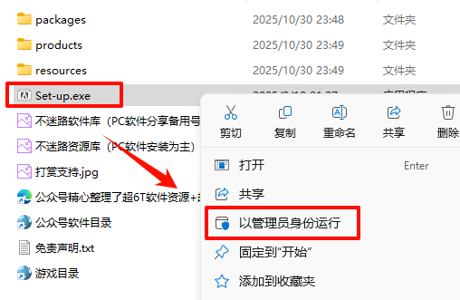 2.´ò¿ª¸Õ¸Õ½âѹµÄÎļþ¼Ð£¬Êó±êÓÒ¼üµã»÷“Setup.exe”Ñ¡Ôñ“ÒÔ¹ÜÀíÔ±Éí·ÝÔËÐД
