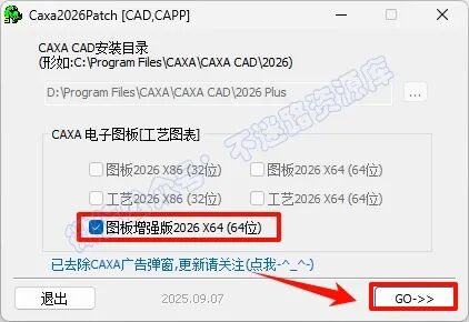 9.自动检测勾选”图版增强版2026 x64(64位)“,点击"GO>>"
