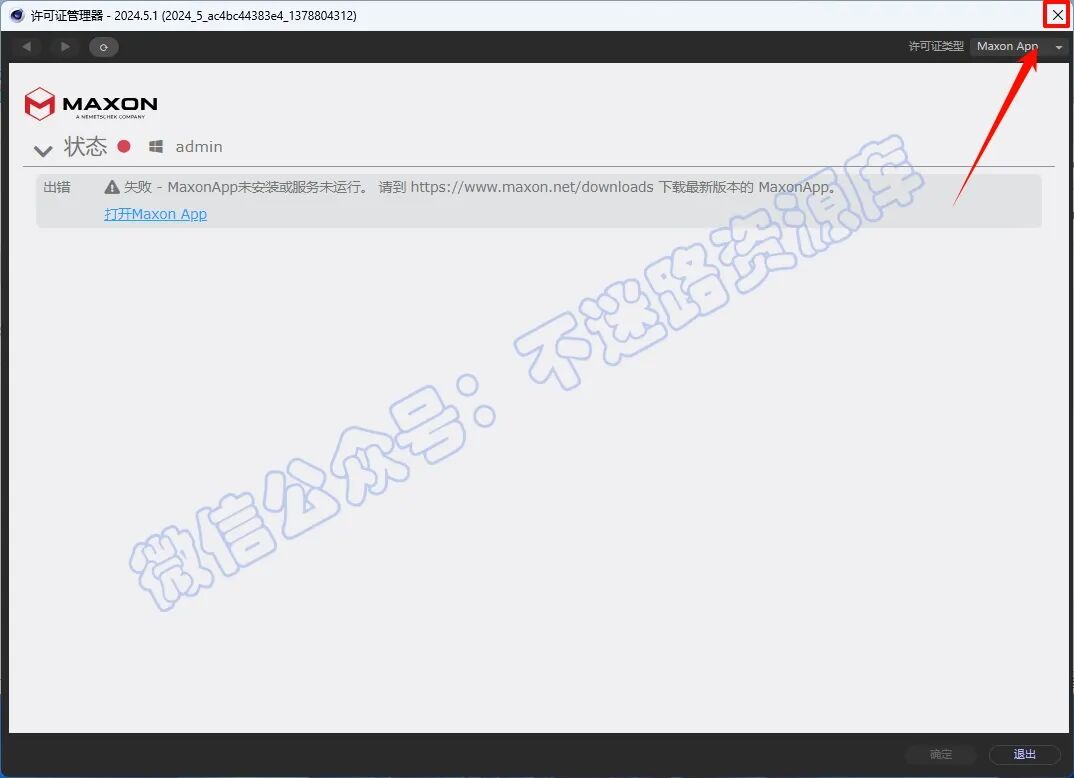 8.µÈ´ýµ¯³ö´øÓдíÎóµÄÐí¿ÉÖ¤¹ÜÀíÆ÷´°¿Ú£¬µã»÷ÓÒÉϽǵēX“¹Ø±Õ