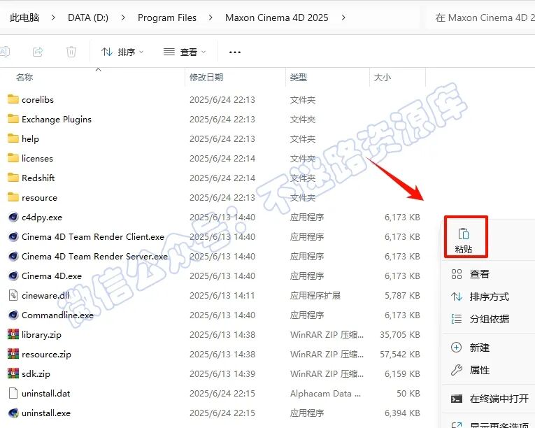 9·µ»ØÖ®Ç°½âѹµÄ“Cinema4D 2025.3.0”Îļþ¼Ð£¬Ë«»÷´ò¿ª“Crack”Îļþ¼Ð£¬¸ù¾ÝÐèÒª´ò¿ª“00‘Îļþ¼Ð£¬Ñ¡ÖДresource“Îļþ¼Ð£¬Êó±êÓÒ¼üµã»÷“¸´ÖÆ”