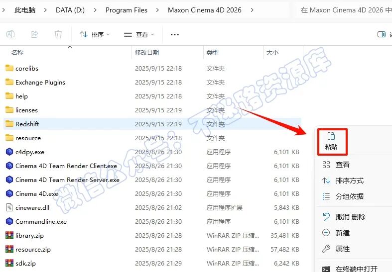 9·µ»ØÖ®Ç°½âѹµÄ“Cinema4D 2026”Îļþ¼Ð£¬Ë«»÷´ò¿ª“Crack”Îļþ¼Ð£¬¸ù¾ÝÐèÒª´ò¿ª“00‘Îļþ¼Ð£¬Ñ¡ÖДresource“Îļþ¼Ð£¬Êó±êÓÒ¼üµã»÷“¸´ÖÆ”