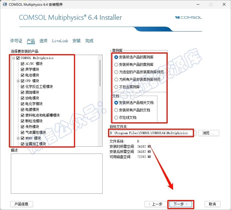8.Ñ¡ÔñÐèÒª°²×°µÄ²úÆ·£¬°¸Àý¿â¡¢Îĵµ£¬ÒÔ¼°Èí¼þ°²×°Â·¾¶£¬½¨ÒéºÍ½Ì³ÌÖеı£³ÖÒ»Ö£¬±¾Àý°²×°µ½DÅÌ£¨½«Â·¾¶µØÖ·ÖеÄÊ××Ö·ûC¸ÄΪD±íʾ°²×°µ½DÅÌ£¬°²×°Â·¾¶²»Òª³öÏÖÖÐÎÄ£©£¬µã»÷“ÏÂÒ»²½”