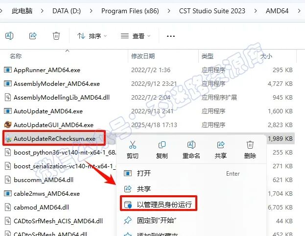 23.Ñ¡ÖГSimuliaLicensePatcher.exe”Îļþ£¬Êó±êÓÒ¼üÑ¡Ôñ“ÒÔ¹ÜÀíÔ±Éí·ÝÔËÐД