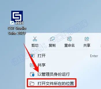 18.ÔÚ×ÀÃæÉÏÕÒµ½”CST Studio Suite 2023“Èí¼þͼ±ê£¬Êó±êÓÒ¼üµã»÷“´ò¿ªÎļþËùÔÚλÖÔ