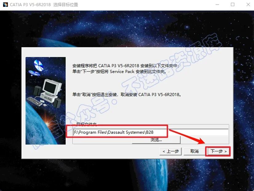 4.Ñ¡ÔñÈí¼þ°²×°Â·¾¶£¬½¨ÒéºÍ½Ì³ÌÖеı£³ÖÒ»Ö£¬±¾Àý°²×°µ½FÅÌ£¨½«Â·¾¶µØÖ·ÖеÄÊ××Ö·ûC¸ÄΪD±íʾ°²×°µ½DÅÌ£¬½¨ÒéÖ»¸ü¸ÄÇ°ÃæµÄÅÌ·û£¬ÆäËü¾¡Á¿²»ÒªÐ޸쬰²×°Â·¾¶²»Òª³öÏÖÖÐÎÄ£©£¬µã»÷“ÏÂÒ»²½”