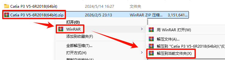 1.Ñ¡ÖÐÏÂÔØµÄѹËõ°ü£¬È»ºóÊó±êÓÒ¼üÑ¡Ôñ“½âѹµ½µ±Ç°Îļþ¼Ð”