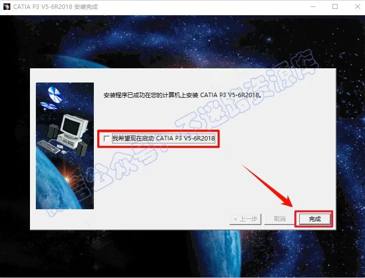 16.È¡Ïû¹´Ñ¡“ÎÒÏ£ÍûÏÖÔÚÆô¶¯CATIA P3 V5-6R2018”£¬µã»÷”Íê³É”