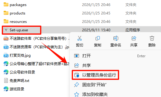 2.´ò¿ª¸Õ¸Õ½âѹµÄÎļþ¼Ð£¬Êó±êÓÒ¼üµã»÷“Set-up.exe”Ñ¡Ôñ“ÒÔ¹ÜÀíÔ±Éí·ÝÔËÐД