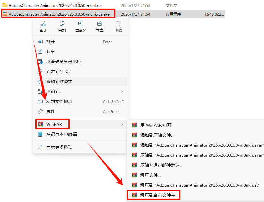 1.½øÈëÏÂÔØÁ´½ÓÏÂÔØ“Adobe.Character.Animator.2026.v26.0.0.50-m0nkrus”°²×°°ü£¬Ñ¡ÖÐÏÂÔØµÄ°²×°°ü£¬È»ºóÊó±êÓÒ¼üÑ¡Ôñ“½âѹµ½µ±Ç°Îļþ¼Ð”