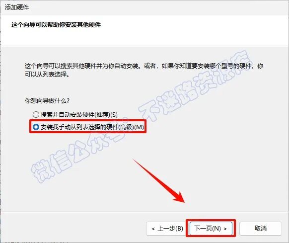 5.选择”安装我手动从列表选择....“,点击“下一页”