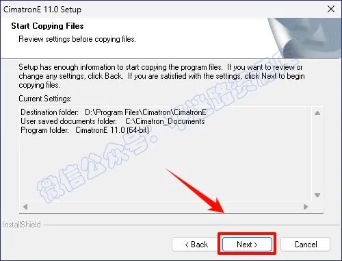 23.软件安装路径建议和教程中的保持一致,本例安装在D盘(将路径地址中的首字符C改为D表示安装到D盘,安装路径不要出现中文),点击“Next”