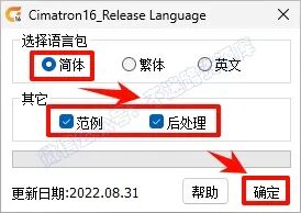 14.选择“简体”,勾选“范例和后处理”,点击“确定”等待完成