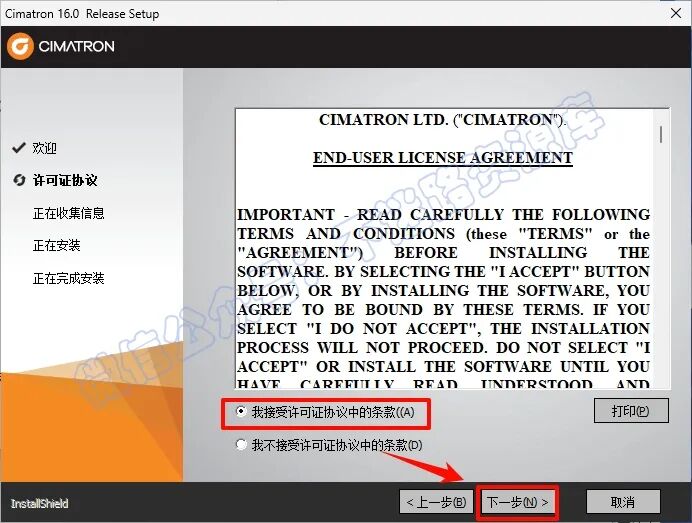 7.勾选“我接受...”,点击“下一步”