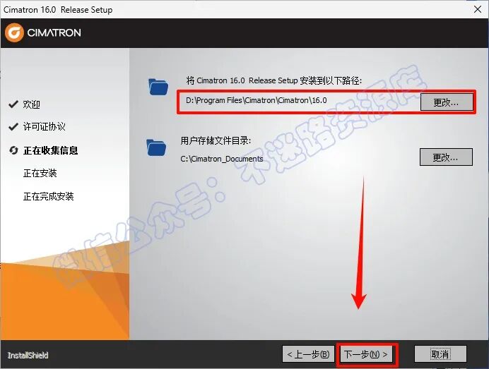 8.软件安装路径建议和教程中的保持一致,本例安装在D盘(将路径地址中的首字符C改为D表示安装到D盘,安装路径不要出现中文),点击“下一步”