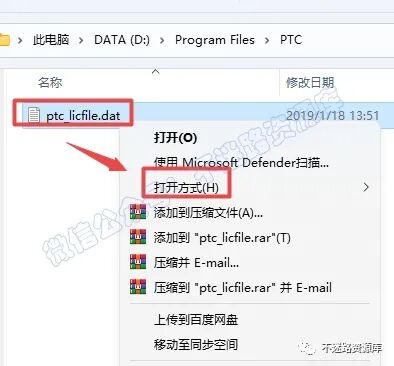 5.Ñ¡ÖГlicense.dat”Îļþ£¬Êó±êÓÒ¼üÑ¡Ôñ“´ò¿ª·½Ê½”
