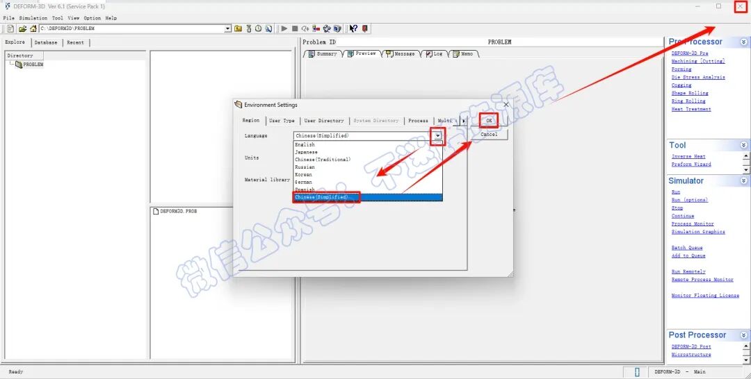 33.Languageµã»÷Õ¹¿ª·û£¬Ñ¡Ôñ"Chinese(Sinplified)"£¬µã»÷"OK"£¬µã»÷ÓÒÉϽǵēX“¹Ø±ÕÈí¼þ